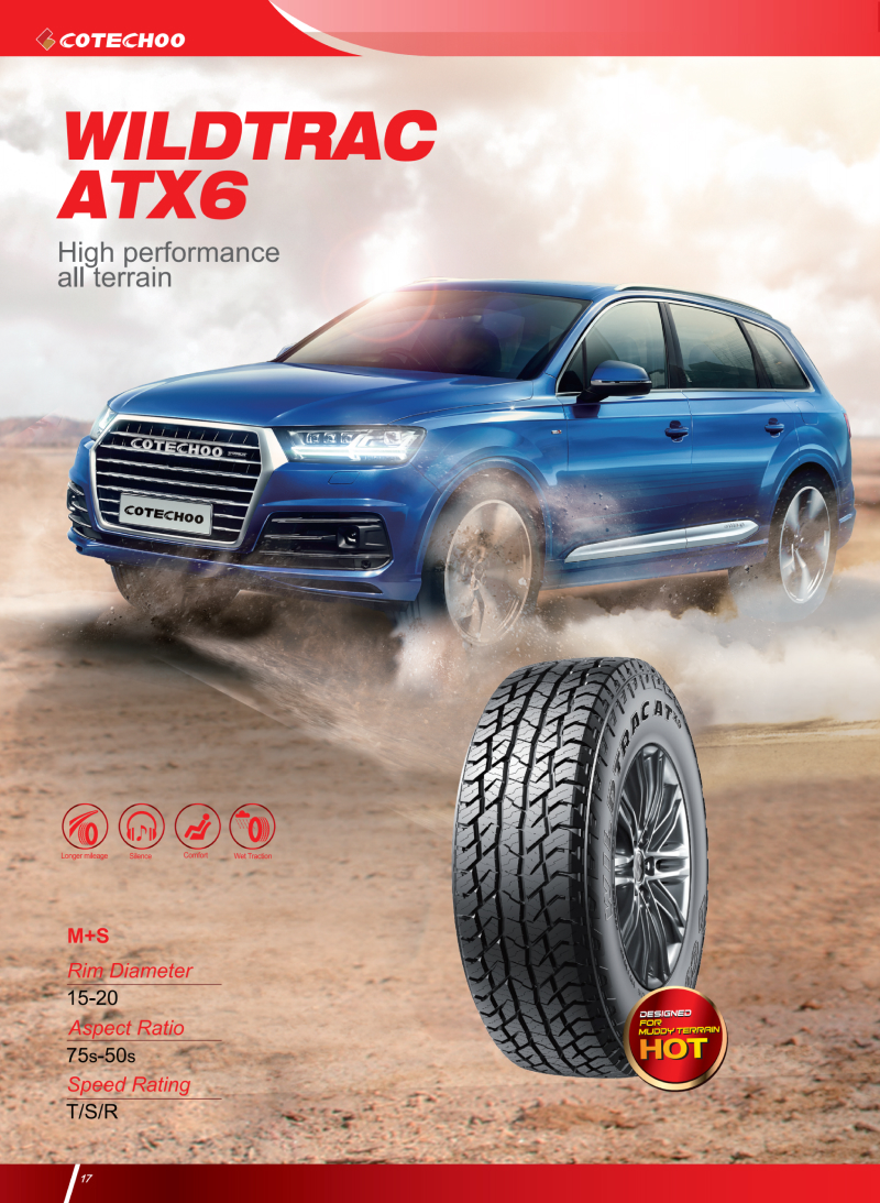 高性能越野輪胎,強壯花紋塊和胎體,能適應(yīng)各種惡劣路況。