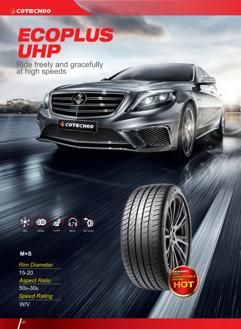 ECOPLUS UHP 出眾的操控性能,運動型輪胎中不可多得的兼具舒適性,駕乘更流暢、更舒適。