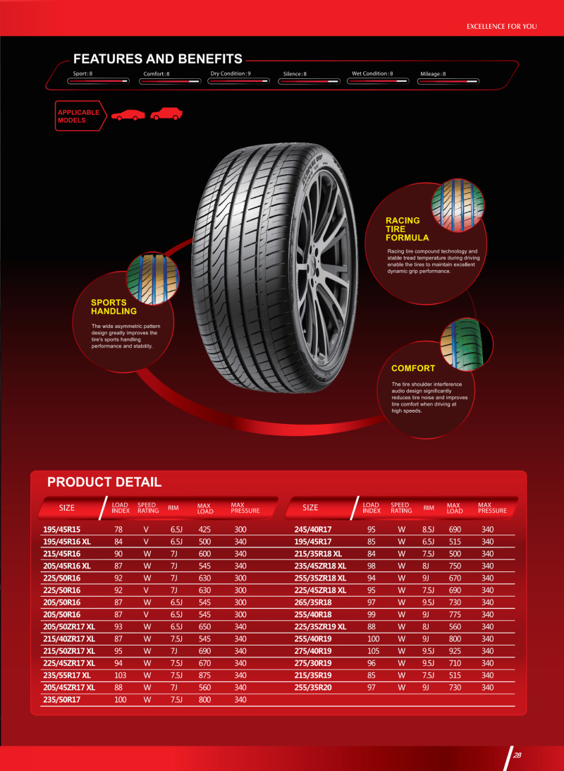 出眾的操控性能,運動型輪胎中不可多得的兼具舒適性,駕乘更流暢、更舒適。