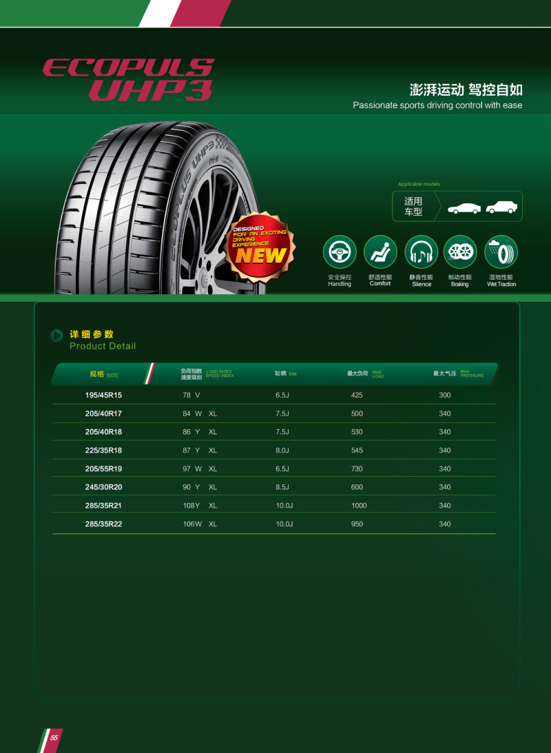 全新設(shè)計運動型花紋,應(yīng)用高含量白炭黑配方,提供優(yōu)秀的抗?jié)窕阅?,澎湃運動,駕控自如。