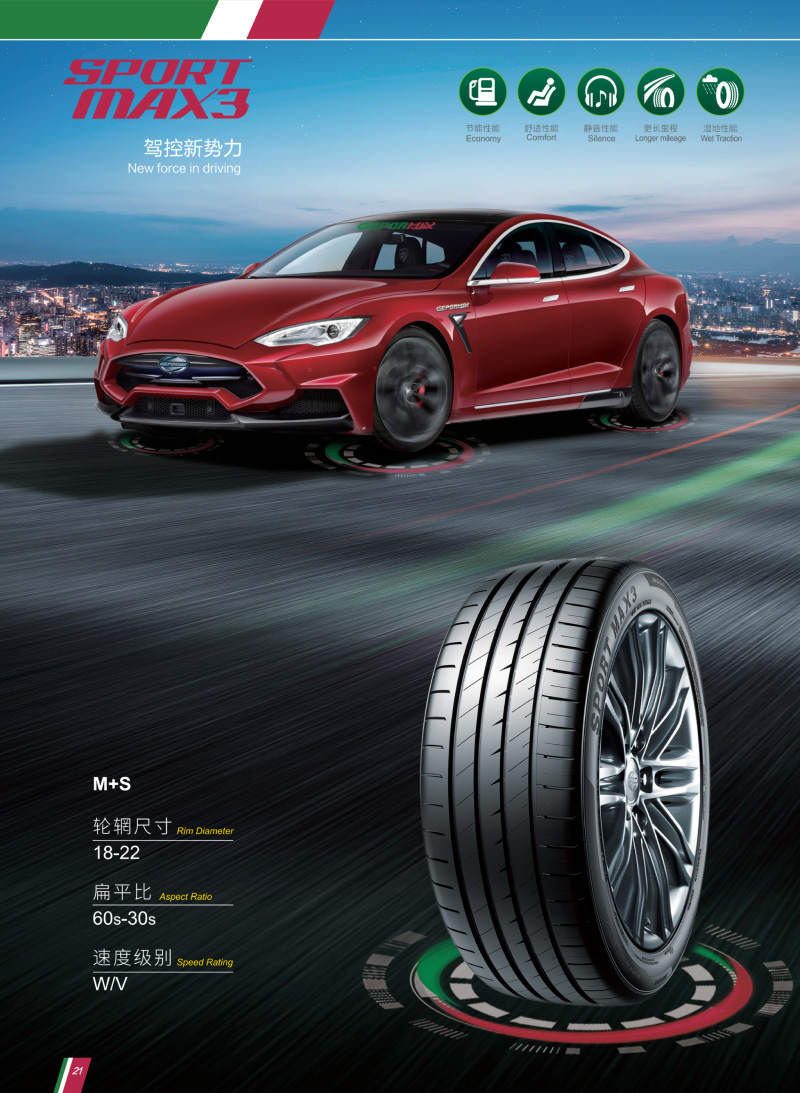 新能源汽車(chē)用EV輪胎,全新花紋設計,具有良好操控性與優(yōu)秀靜音性,低滾阻配方,讓您的新能源汽車(chē)更省電。