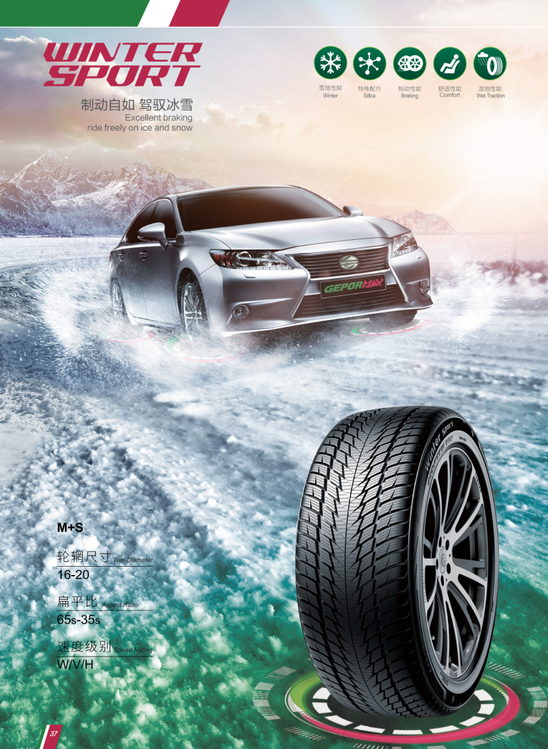 WINTER SPORT 獨特胎面膠料配方及花紋,為輪胎提供良好的牽引力和制動(dòng)性能,可保證在冬季氣候下的駕駛安全性能。